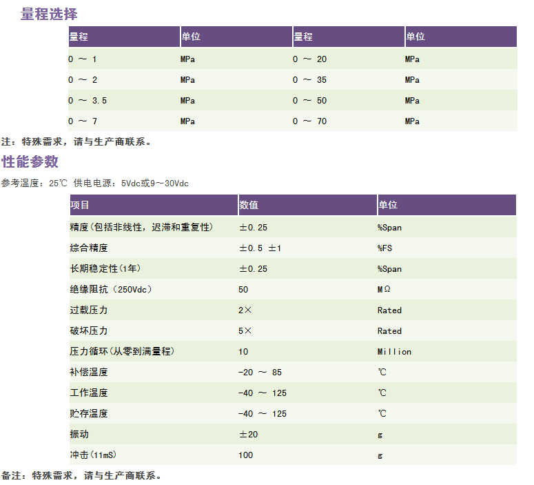 特点 1.全温区补偿 2.结构小巧、安装方便 3.宽介质适应范围 4.电磁干扰保护 5.输入端反向极性保护 6.输出端短路保护 7.工作温度范围宽 8.防水结构设计 9.本安防爆型产品符合GB3836.4标准要求,取得了防爆合格证,防爆标志为Exia IICT4,产品已取得CE认证 产品说明 RC580型压力变送器是一款结构紧凑、高性能、低成本的工业用压力变送器。采用特殊结构设计和专门定制的放大电路,具有浪涌保护、电路输入端反向极性保护、输出端短路保护等特点,完全符合*的重工业CE标准。典型应用:工程机械、 液压气压控制、制冷系统、农用机械设备、工业自动化控制、HVAC系统、泵和水处理系统。 RC580型变送器压力座采用17-4PH不锈钢单件一体式结构加工而成,一体化的不锈钢膜片使之过载性能远高于扩散硅、陶瓷等常用芯体,并且其压力接口无焊缝、无硅油或其他有机物,密封性能好。传感器敏感器件采用玻璃微溶技术牢固烧结在压力座上,使传感器耐高温、抗震动等性能大幅度提升,保证了变送器在工业恶劣环境中使用的长期稳定性、可靠性,经久耐用。在标准净化生产过程中,各项参数严格受控,整个产品经过了元器件、半成品及成品的严格测试及老化筛选,性能稳定可靠。