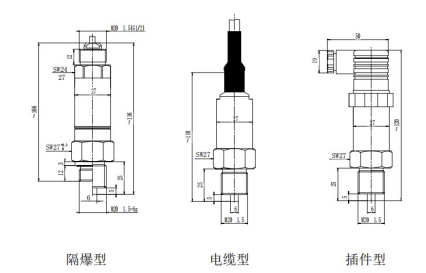 Example: RC6201-[0-10]K-E-C1-B2-V1-G (RC6201 series general low pressure transmitter, measuring range 0-10kpa, e = 4 ~ 20mADC output, pressure interface M20 * 1.5 end face, cable outlet, 24V power supply, gauge pressure) Note: 1. Please note that the tested medium shall be compatible with the part contacting the product and the medium. 2. When the transmitter with zero pressure and negative pressure is required, please indicate the range when ordering. 3. For special requirements, please consult with our company and indicate in the order. |