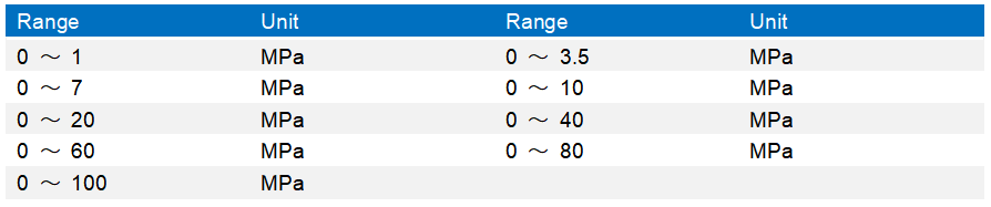 The pressure seat of RC2062 constant pressure water supply special pressure transmitter is processed with 17-4PH stainless steel single piece integrated structure, the integrated stainless-steel diaphragm makes its overload performance much higher than that of diffused silicon, ceramic and other common cores. There is no weld, silicone oil or other organic matter on the pressure port, and the sealing performance is good. The sensitive elements of sensor are firmly sintered on the pressure seat by glass micro-melting technology, which greatly improves the performance of sensor, such as high temperature resistance and anti-vibration, ensuring the long-term stability, reliability and durability of the transmitter in harsh industrial environment. In the process of standard purification, all the parameters are strictly controlled, the whole product has undergone strict testing and aging screening of elements, semi-finished products and finished products, so the performance is stable and reliable. Range Option