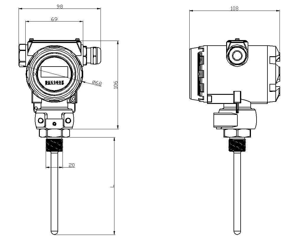 Features Aluminum alloy electronic housing, hosing protection level IP65 Reverse polarity protection, instantaneous overcurrent and overvoltage protection. LCD dual-color backlit display High reliability and stability Overvoltage and overcurrent protection, strong environment adaption Compact structure, easy installation Advanced anti-interference and anti-surge circuit protection Excellent anti-shock, anti-overload, anti-vibration and corrosion resistance Description RC6205 industrial temperature transmitter is a high-performance, low-cost industrial temperature transmitter launched by our company. High precision PT100 temperature sensor is adopted, with superior performance, compact size, long life span, high cost performance. Application: industrial automation control; hydropower, gas, chemistry and other industries. RC6205 industrial temperature transmitter adopts the aluminum alloy electronic housing, which ensures that the transmitter must consider the requirements of rainproof, lightning-protected, corrosion resistant and explosion-proof under the harsh industrial environmental conditions, its structure is simple, easy to install and solid. In the standard purification production process, all the parameters are strictly controlled. The whole product has undergone strict testing and aging screening of components, semi-finished products and finished products, so the performance is stable and reliable. Insertion Depth Option